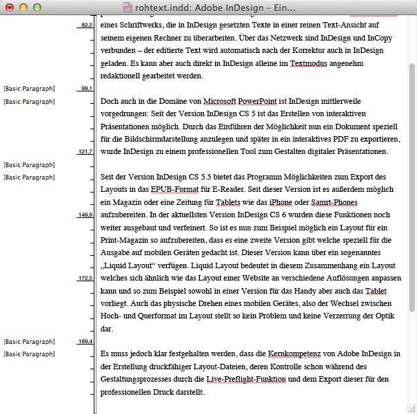 Es kann aber auch direkt in InDesign alleine im Textmodus angenehm redaktionell gearbeitet werden.