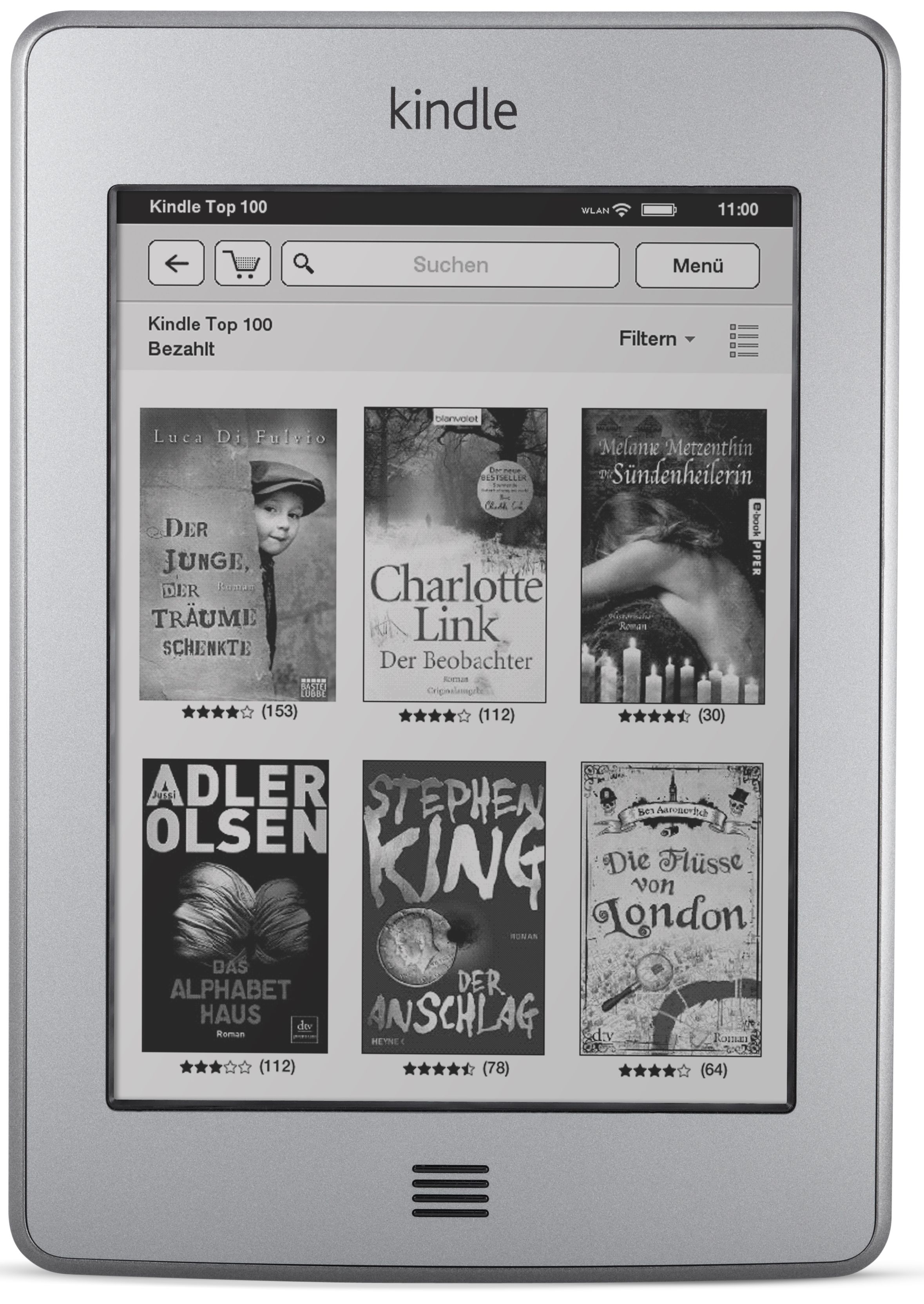 [imgr=kindle-touch-front-supportnet.jpg]kindle-touch-front-supportnet-200.jpg?nocache=1343810856589[/imgr]Der Touch kann per Fingertipp bedient werden, doch dies erweist sich beim Umblättern als Nachteil. Das Gerät ist größer wie das vorherige Modell, hierdurch müssen andere Hüllen angeschafft werden. Der Größenunterschied macht sich im Bereich des Rahmens bemerkbar, hierdurch liegt der Bildschirm tiefer im Gerät. Das neue Modell verfügt lediglich über zwei Knöpfe, ein Knopf befindet sich auf der Vorderseite und der weitere Knopf befindet sich an der Unterseite. Der untere Knopf dient zum Ein- und Ausschalten. Auf der Unterseite ist auch der Kopfhöreranschluss angebracht und hier befinden sich auch zwei Lautsprecheröffnungen.