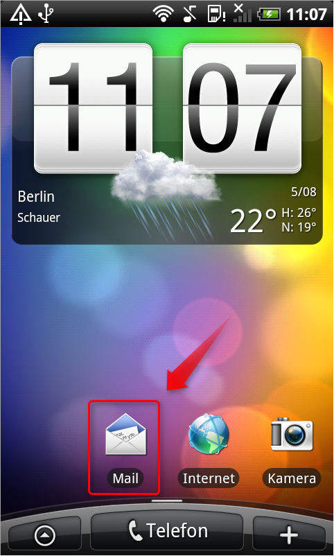 Öffnen Sie das Programm "Mail". In der Standardansicht befindet sich Mail auf dem Homescreen oder Sie gehen alternativ über das Appmenü.
