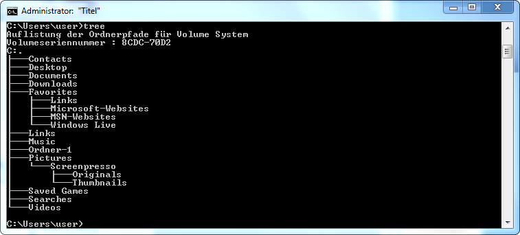 TREE [Laufwerk:][Pfad] [/F] [/A]