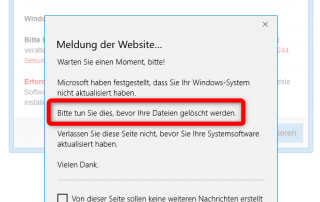Webseite mit lautem Piepton fordert zum Update auf, Vorsicht Falle