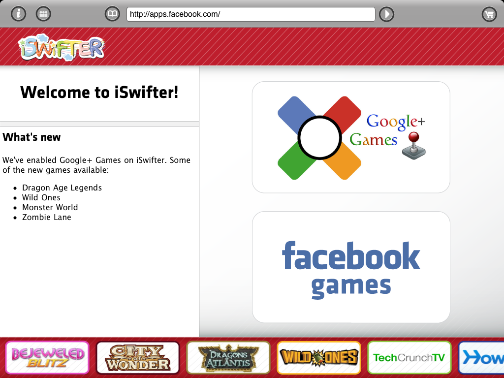 iSwifter ist der erste cloud-basierte Flashbrowser für iOS-Systeme, wie beispielsweise das iPad. Steuert man mit iSwifter eine Webseite mit oben genannten Inhalten an, so geht die Anfrage über Server die in den USA stehen. Diese Server führen dies Programme aus und übertragen sie dann wieder in den iSwifter Browser. In diesem Fall wird also beispielsweise das iPad nicht Flashfähig gemacht, sondern man surft über andere Server diese Inhalte für den Benutzer ausführen.