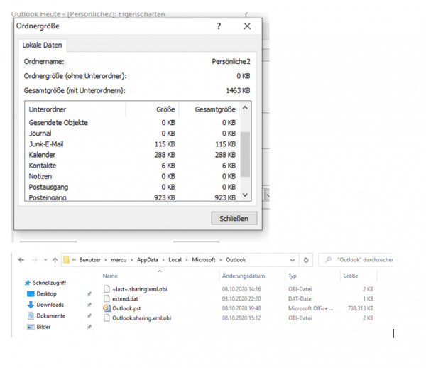 Oberes ist aus Outlook direkt und zwar von dem Rechtklick auf den Ordner