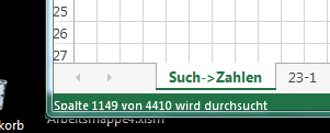 Application.StatusBar = "Suchreihe " & s & " von " & UBound(varSuchen, 2) & ": Spalte " & lngSpalte & " von " & UBound(varArchiv, 2) & " wird durchsucht "