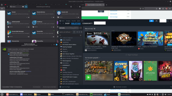 also in Mint gibt es Steam direkt über die Anwendungsverwaltung. Steam installiert wohl Proton in diversen Versionen was wohl eine art Plattform ist und Vulkan was wohl ein Shader ist - also ich starte die Spiele demnach eigentlich über eine App die extra für Linux ist und nicht über eine Emulation.