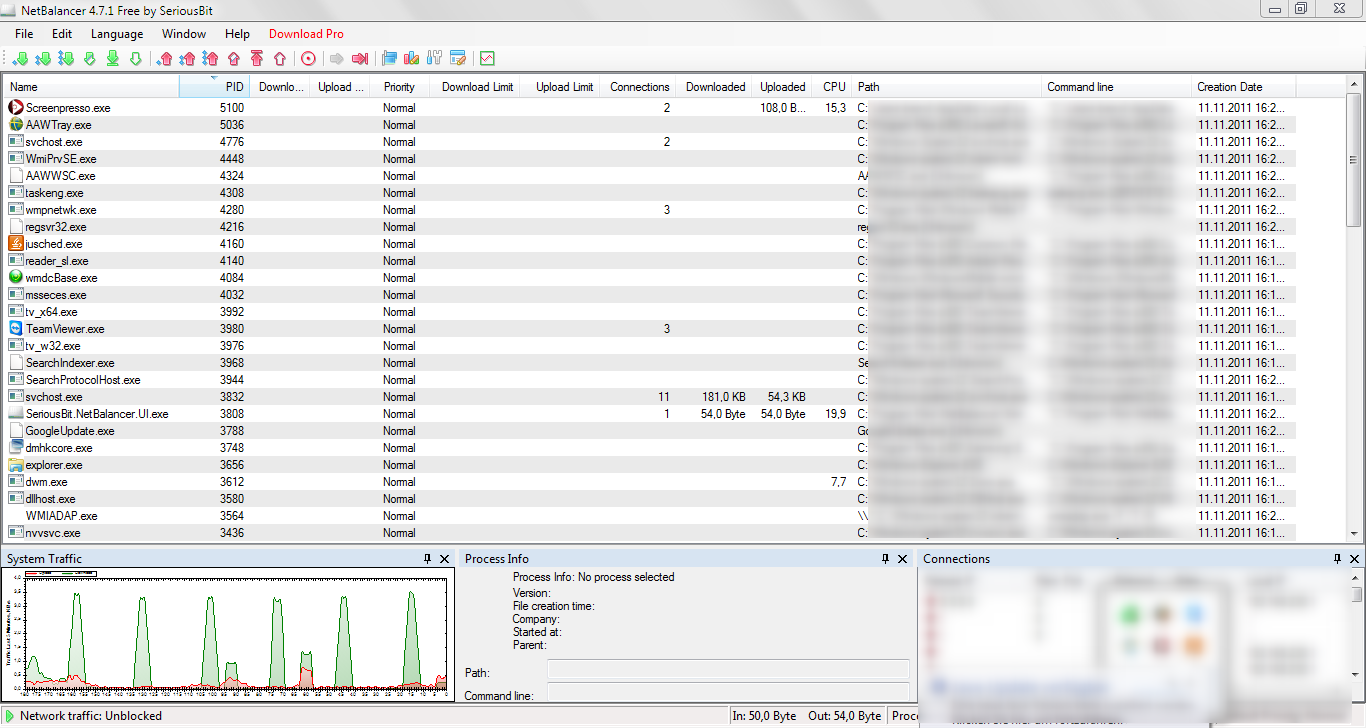 Bei nicht jedem ist VDSL verfügbar und viele wollen die extra Kosten für eine schnellere Datenleitung nicht bezahlen. Sind Sie aber jemand der gern und viel mit dem Internet arbeitet bzw. sich viel im Internet aufhält, so kann eine schmalbrüstige Datenleitung schnell an ihre Grenzen stoßen. Haben Sie beispielsweise ein Filesharing-Programm im Hintergrund offen und möchten aber dennoch lieber momentan Videos im Internet schauen, so wird dies schwer händelbar. Mit dem kostenlosen Programm NetBalancer haben Sie hier eine adäquate Lösung für Ihr Problem mit der geringen Bandbreite. Mit NetBalancer können Sie bestimmten, wie viel Bandbreite ein einzelnes Programm bekommen soll. Durch diese Bestimmung bekommen Sie zwar keine größere Datenleitung, dennoch können Sie diese besser einteilen und bestimmen welches Programm nun im Vordergrund stehen soll. Der große Vorteil ist, dass Sie somit nicht mehr merken dass Ihre Bandbreite nicht ausreicht. Schauen Sie lieber Videos im Internet, so können Sie dies tun, dann wird eben das Filesharing im Hintergrund etwas langsamer. Außerdem zeigt Ihnen NetBalancer auch an welche Programme überhaupt Ihre kostbare Bandbreite fressen. Informationsreich ist das Programm aber auch, so wird Ihnen beispielsweise angezeigt wie viel Bandbreite bereits ein Programm, seit der Einführung von NetBalancer verbraucht hat. Einen kleinen Nachteil bringt die kostenlose Version allerdings mit sich, so kann diese maximal fünf Prozesse priorisieren, was aber für die meisten Nutzer völlig ausreicht.