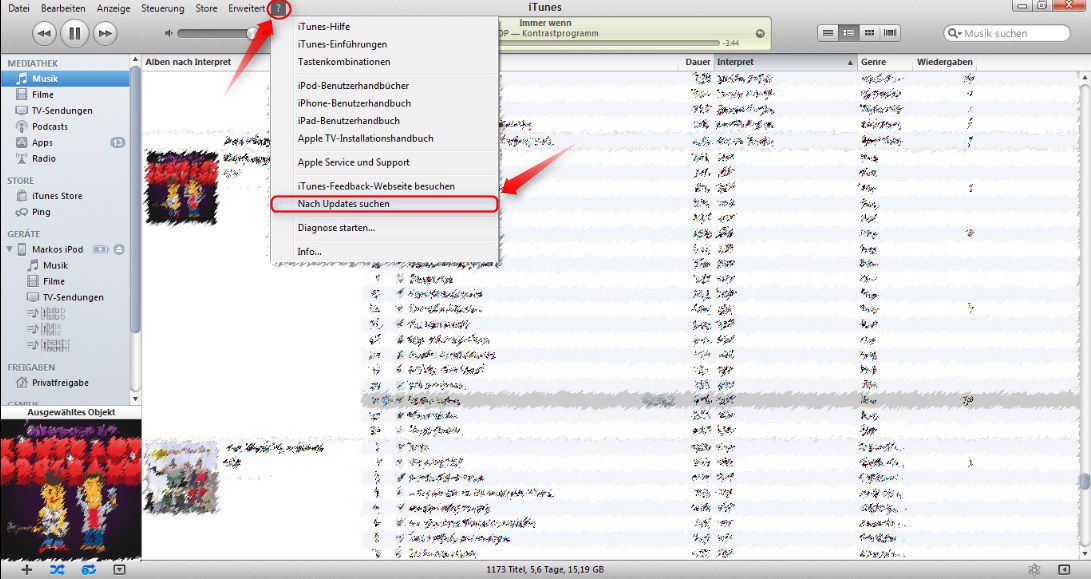 Zu aller erst sollten Sie sich vergewissern, ob Sie die aktuellste Version von iTunes besitzen, falls nicht, Update installieren!