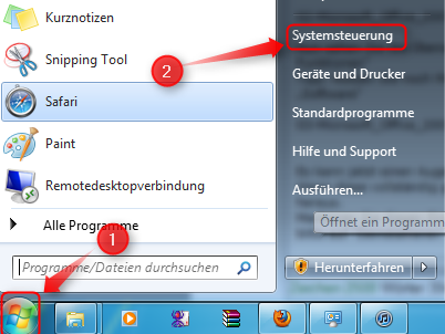 Starten Sie die Systemsteuerung über Ihren Windows Start Button