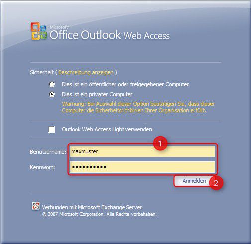 Starten Sie nun Microsoft Outlook Web Access 2010 über Ihren Browser. Den Link haben erhalten Sie von Ihren Provider/ Unternehmen.
