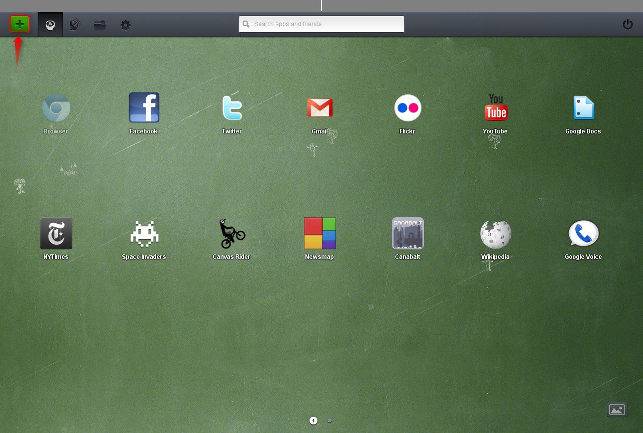 Schritt 1: Wenn Sie nun auf Ihrem Jolicloud Dekstop sind müssen Sie auf das Grüne Plus Zeichen in der oberen linken Ecke klicken.