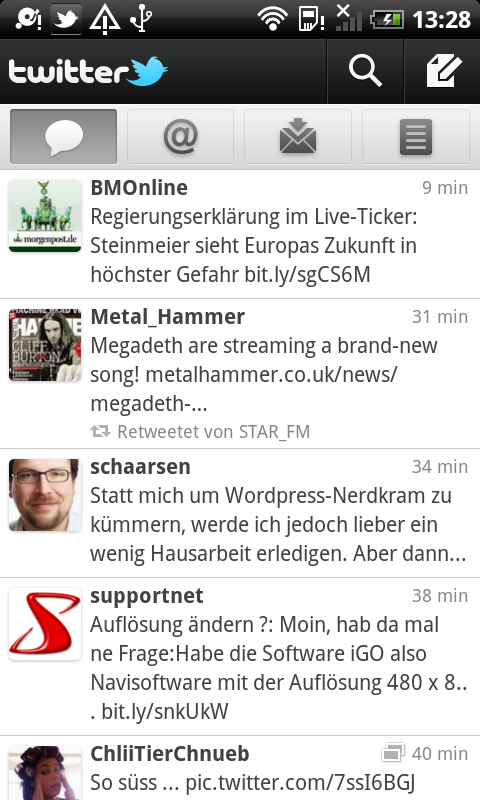 [imgr=logo-470.jpg]logo-80.jpg?nocache=1319989643690[/imgr]Twitter ist der wohl bekannteste Mikrobloggingdienst weltweit mit ca. 200 Millionen Benutzern (Stand April 2011). Dieser Dienst lebt vor allem von kurzen Statusupdates, welche von überall gemacht werden müssen. Natürlich gibt es deshalb auch eine Android-App, um die wir uns in diesem Artikel kümmern wollen.