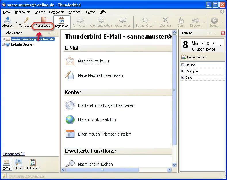 In Thunderbird das Adressbuch aufrufen
