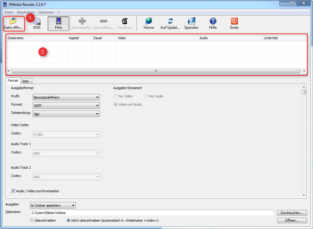 Bebilderte Schritt für Schritt Anleitung wie mit XMedia Recode Videodaten in nahezu alle bekannten Formate konvertiert werden können.