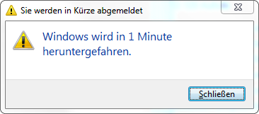 Der Standard-Befehl fährt den Computer in einer Minute herunter. Dabei wird eine Meldung ausgeben.